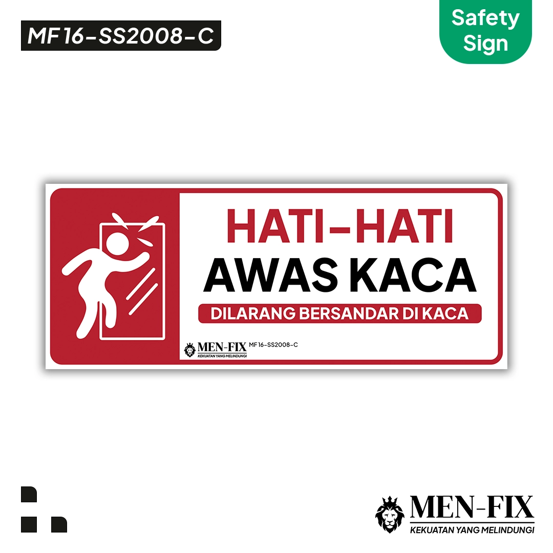 - Product Name : MEN-FIX MF 16-SS2008-C Hati-hati Awas Kaca Sticker Sign.